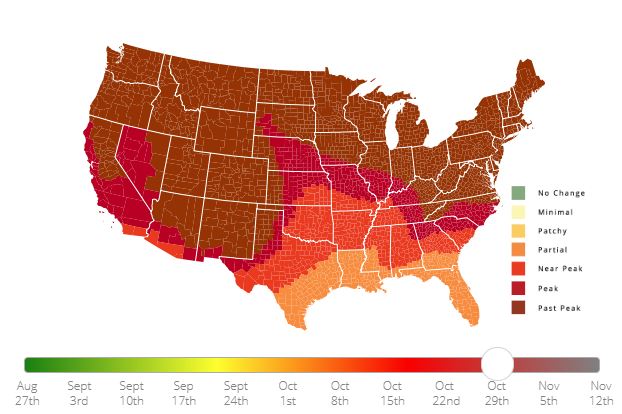 It makes sense that most family vacations are during the summer. Kids are out of school. I suggest taking a vacation during the fall, to see the bold colors of the season. Vox has an interactive map showing when and where fall foliage will peak.