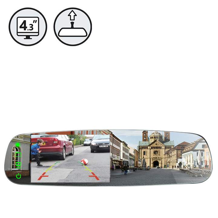 Its 4.3" touch screen monitor is placed to the left of the mirror while the entire surface is reflective and acts as a mirror. For an absolute perfect backing up experience, this monitor comes with adjustable grid lines, allowing you to adjust the grid lines to be completely accurate regardless where you mount the camera.