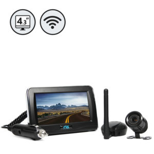 In wired backup camera systems the camera/monitor is connected to a power harness. A cable is run the length of the vehicle connecting the components, and only one power source is needed. If we choose wired, we would probably install a variation of the RVS-776718 G-Series Backup Camera System. This system includes a mirror monitor with a 4.3" Display, distance grid lines, and a compact waterproof camera. Different systems in this series include great features, such as bluetooth, navigation, and backup sensors. The installation would be longer than with a wireless system, as cabling would need to be ran through the vehicle.
